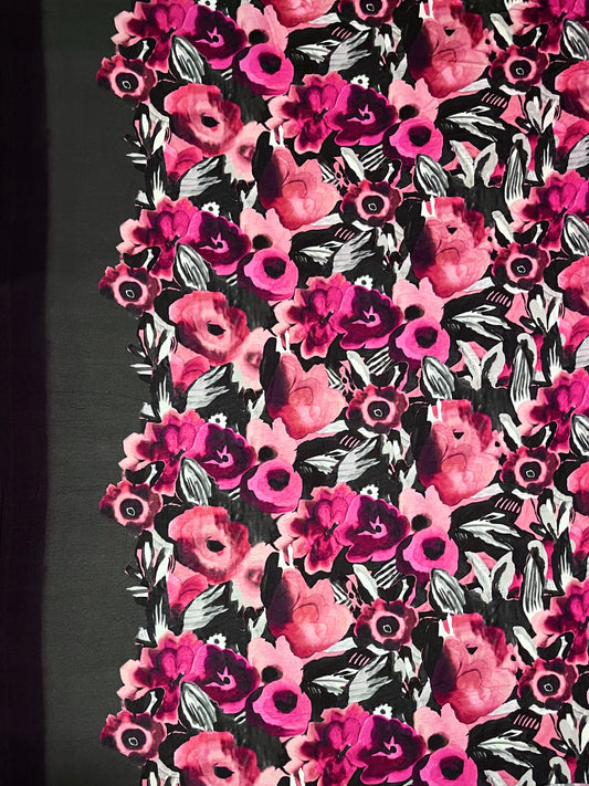 PENELOPE Watercolor Floral Border Print Viscose Jersey Knit. Sustainably made in Italy.