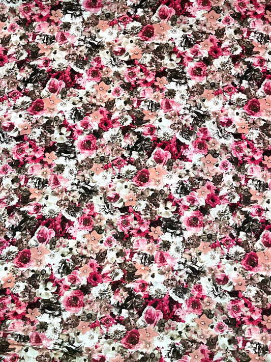DAHLIA Botanical Floral Print Viscose Jersey Knit. Sustainably made in Italy.