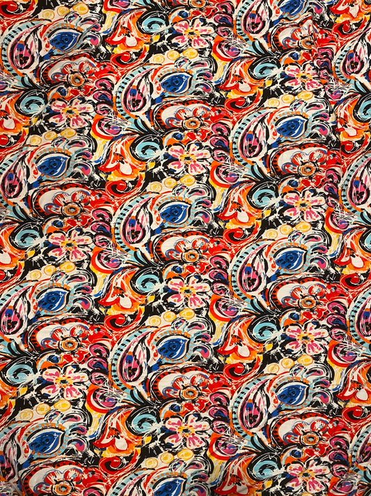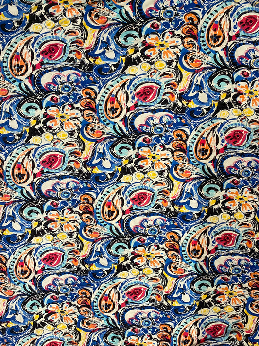 SIENNA Sketch-look Paisley Print Viscose Jersey Knit. Sustainably made in Italy.