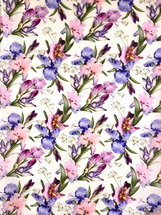 SERAPHINE Orchid Print Silk Blend Chiffon. Sustainable made in Italy.